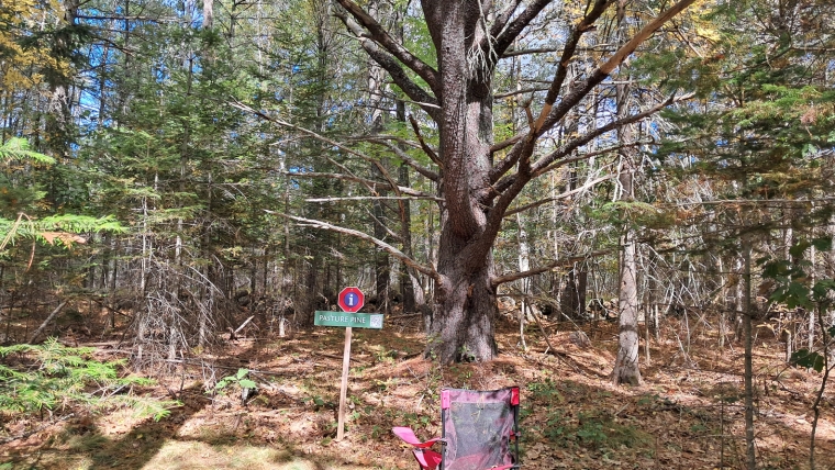 Look up at this tall white pine. Its shape tells a story of the land around it. In the mid-1800s, this hillside was an open sheep pasture—part of Maine’s “Sheep Fever” era, when farmers cleared vast tracts for grazing. The stone wall nearby marked the pasture’s edge.